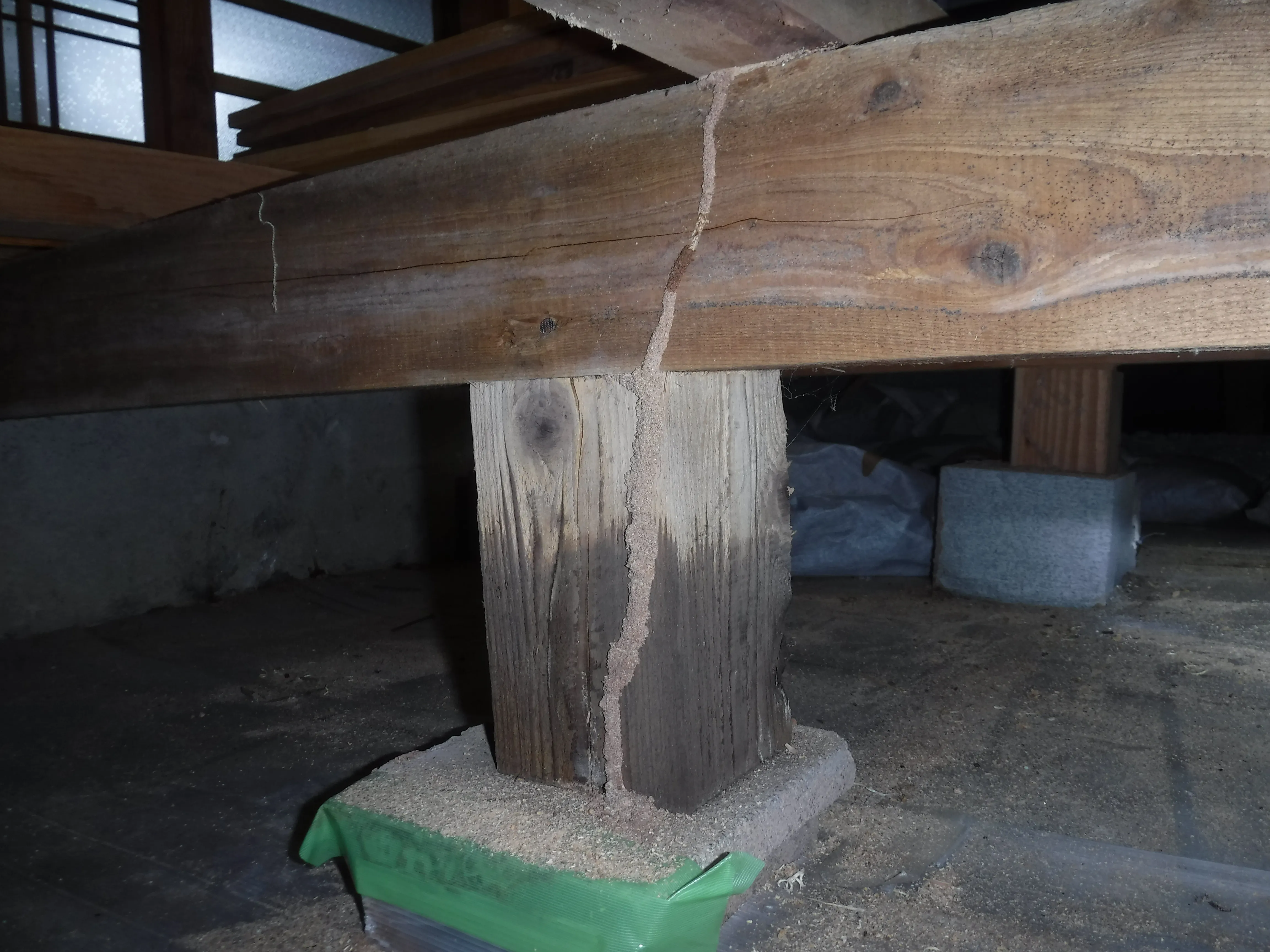 住まいの耐久性を保つため、シロアリ被害を防ぐためには早期の発見が重要です。住まいの安全が最初に脅かされるのは、床下や屋根裏、クローゼットなど目につきにくい場所や、浴室や洗面所、トイレなどの水を多く使う場所です。これらの場所は湿気がこもりやすく、カビやシロアリ・羽アリの発生、木材の腐朽が起こりやすい箇所となります。もしも「ミシミシ」という音が聞こえる場合は、要注意です。早めの対応をおすすめします。